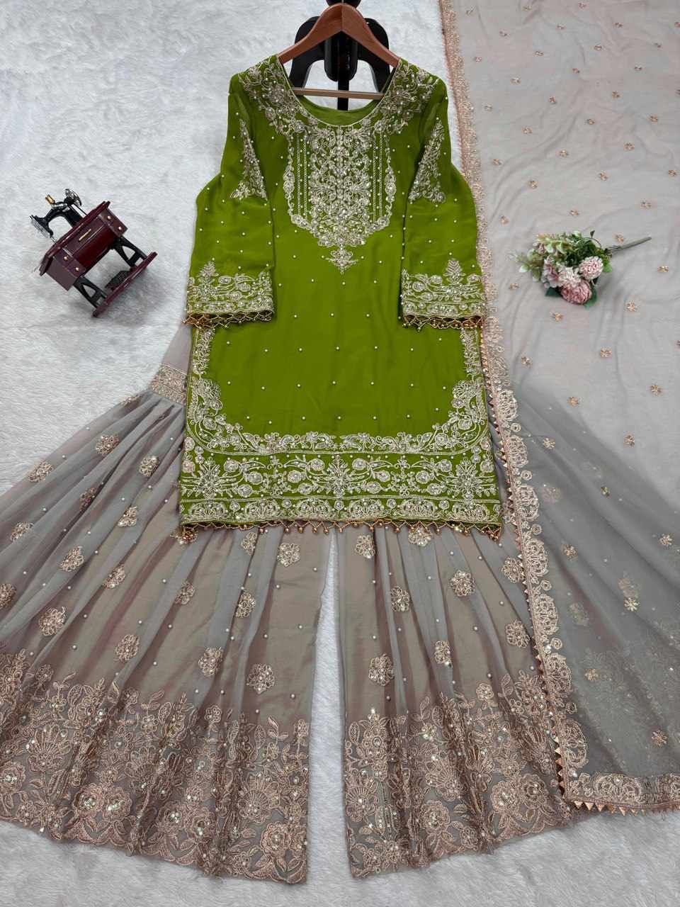 KD 1486 Green Faux Georgette with inner Beautiful Designer Suit has been successfully added to your cart .