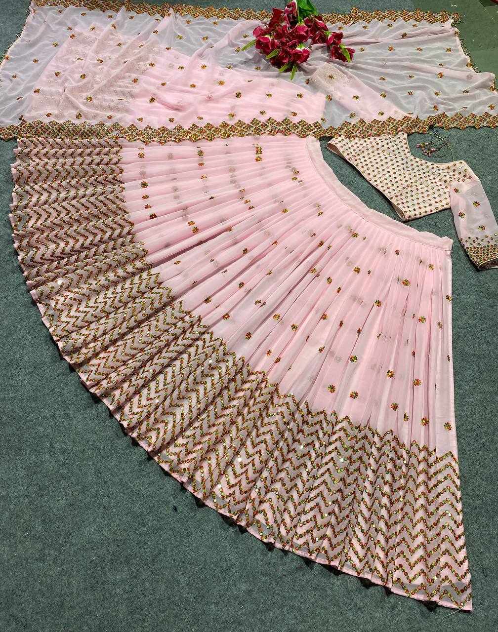 | Name : | MF 412 Peach Heavy Georgette Lehenga |