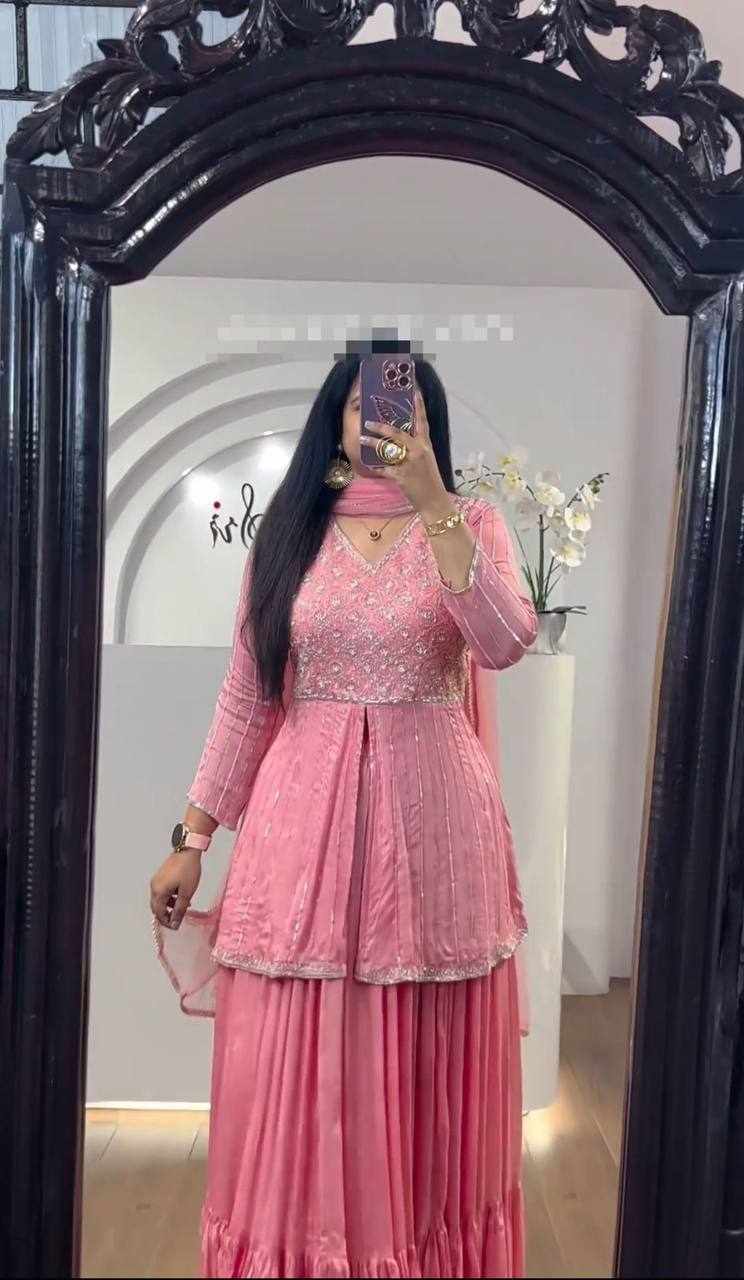 Pc 434 Pink Chinon Sequence Work Lehenga