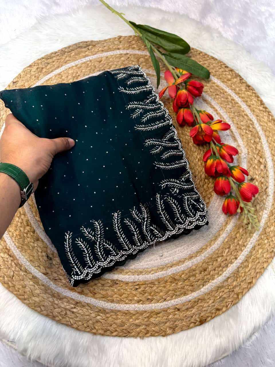 SAREES: Fandy satin silk with val moti jarkhand