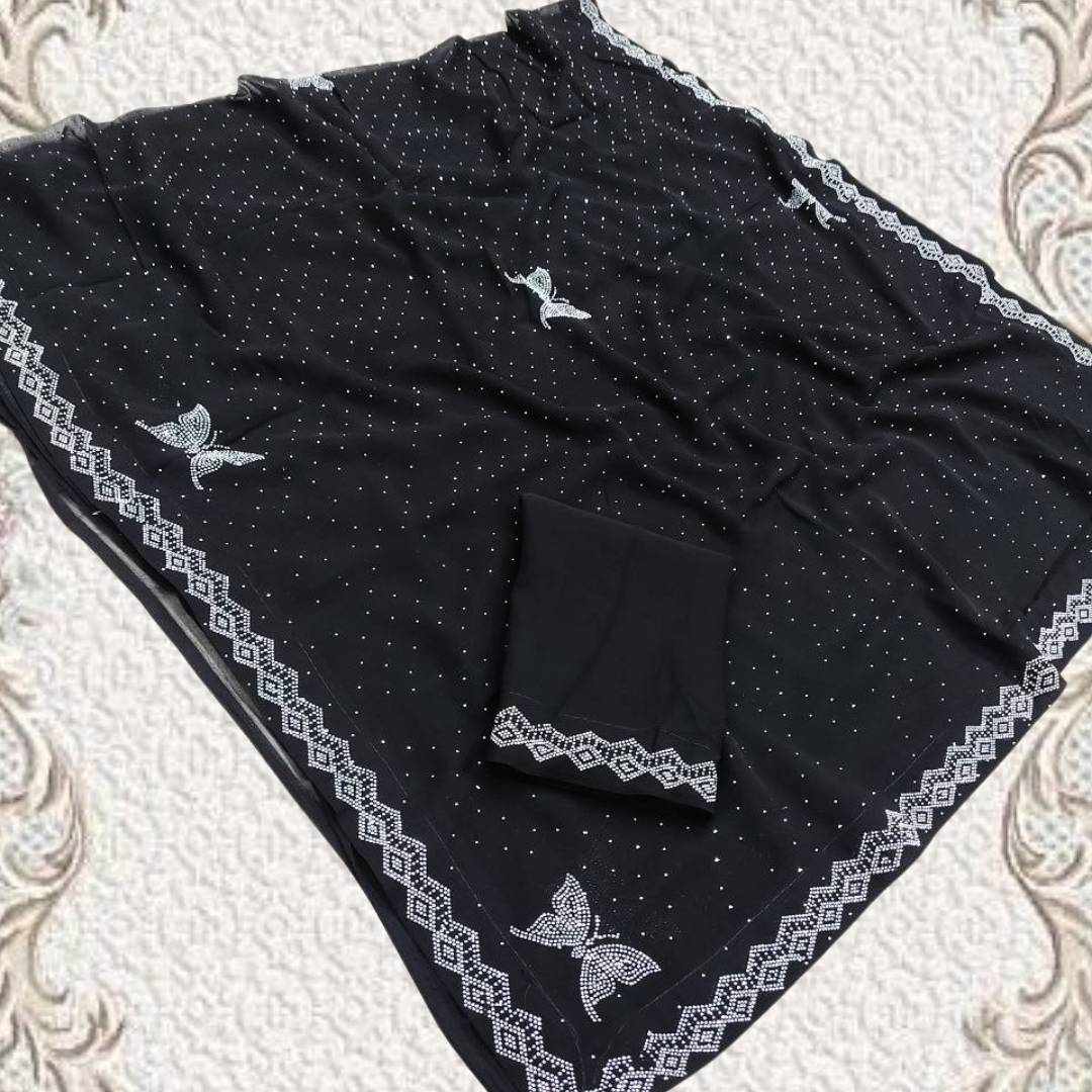 | Name : | S4s Black Siroski Butterfly Stones Lace Georgette Party Wear Saree |